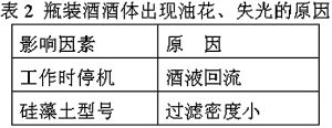 2 瓶裝酒酒體出現油花、失光的原因及解決辦法(見表2)
