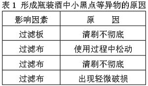 1 瓶裝酒出現小黑點等異物的原因及解決辦法(見表1)