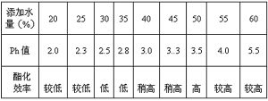 (1)酯化pH值,該pH值為黃漿水與水混合溶液的酸度。(見表1)