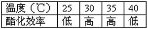 (2)酯化酒精度選擇。(見表2)其結果為選擇8%最為合適。(3)酯化溫度選擇。(見表3)其結果分析知其最適酯化溫度30℃-35℃。