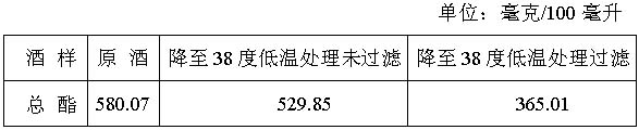 關于冷凍過濾對于白酒總酯含量的變化見表3。