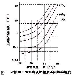 1977年,將河南張弓酒廠原酒加水降度時析出的白色絮狀物,送到有關科研單位運用氣相色譜儀進行分析,結果主要是高沸點的棕櫚酸乙酯、油酸乙酯、亞油酸乙酯的混合物。這三種高級脂酸乙酯均為無色油狀物,沸點在185.5℃(汞柱10mm)以上,油酸乙酯及亞油酸乙酯為不飽和脂肪酸乙酯,性質不穩定,它們溶解于醇不溶解于水。因此,這些成分在白酒中的穩定性和在乙醇中的溶解度與酒精度有密切關系。亞油酸乙酯和酒度、溫度的關系(見圖2)。可見,酒精度超過30度時,其溶解度急劇增大。當溫度上升時,溶解度也提高,其對數值變大,而明確了白酒中所以含量這樣大而澄清透明,是由于高酒度的條件所致。而當白酒中存在的亞油酸乙酯等高級脂肪酸乙酯在酒精度稀釋到40度以下時,由于其溶解度降低而出現了白色絮狀膠體沉淀物。采用過濾法將這些沉淀物除去時降低品溫及過濾溫度是必要的。