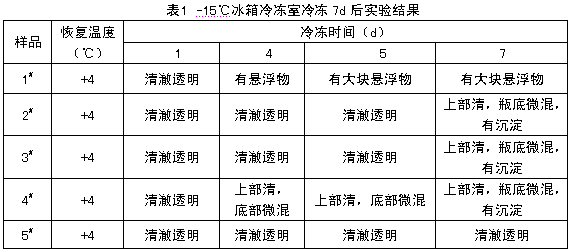 放入-15℃冰箱冷凍室,經7d冷凍后觀察結果見表1。