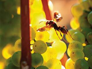 黃蜂在臨近成熟的葡萄漿果上取食