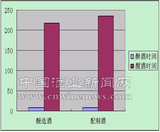 ②從3個圖表的共同趨勢中我們可以看出,釀造酒醉酒時間長,醒酒時間短。同時,從圖6看出喝酒后小白鼠的pH出現了不同程度的降低,而液態勾兌酒比固態發酵酒降低更多。說明液態勾兌白酒從表觀上無論化學組成多么一致,風格與風味多么相近,仍無法達到固態釀造酒的質量,進一步說明了固態發酵酒是在其各自獨特工藝下發酵釀造而成的,是任何其他方法仿制不出來的。