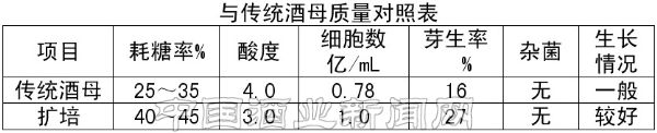 7.1 擴培后使用,干酵母的用量較少,并減少了傳統酵母多級培養中小酒母前的操作環節,便于控制酒母質量。