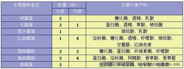 在霉菌中以黃曲霉群、紅曲霉屬和黑曲霉群較為占優勢;在酵母菌中以球擬酵母和漢遜氏酵母較為占優勢;在細菌中以芽孢桿菌較為占優勢。
