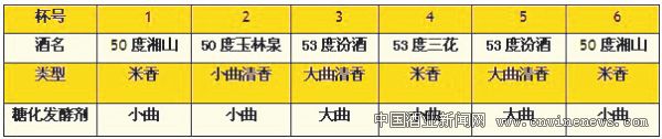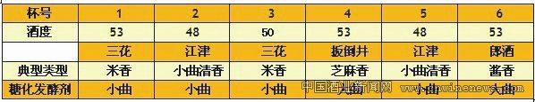 答案(見表2) 。總分42分,典型類型:兼香,6分;糖化發酵劑:大曲,6分;