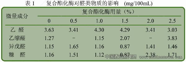 2 .1 復合酯化酶對基酒中醛類物質生成的影響