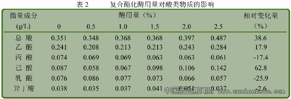2 .2 復合酯化酶對基酒中酸類物質生成的影響