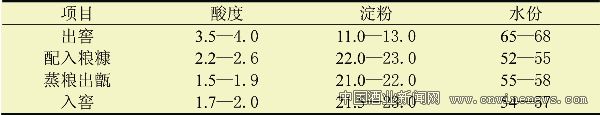 但雙輪底糟由于在窖池中發(fā)酵時(shí)間長(zhǎng),微生物代謝產(chǎn)物的積淀相應(yīng)增加,阻礙發(fā)酵的因素也多,尤其是長(zhǎng)期壓排后、酸度過(guò)高(4.5以上)等情況,可根據(jù)糟醅情況,采取適當(dāng)調(diào)整用曲、糠、糧量和正常二茬混入等方式,保證發(fā)酵正常進(jìn)行。