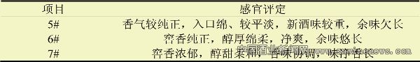 由表3可以看出,1#酒樣理化較2#己酸乙酯高出0.81g/l,其他指標(biāo)也略高。分析認(rèn)為,是由于雙輪底配入糧糠后,增加了疏松度,降低了糟醅水分,便于上甑操作,提高了蒸餾效率。由表4感官評(píng)定中可以看出,配醅后的1#口感放香較2#放香好,香氣豐富,這與帶入糧食香氣有很大的關(guān)系。1#酒質(zhì)的感官及理化符合雙輪底酒等級(jí)標(biāo)準(zhǔn)。