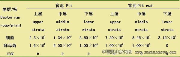 對窖泥而言,細菌總數為中層﹥下層﹥上層。酵母菌僅少量分布于中上層窖泥中,霉菌在宣酒芝麻香型白酒窖池池壁與窖泥中均沒有被分離得出。