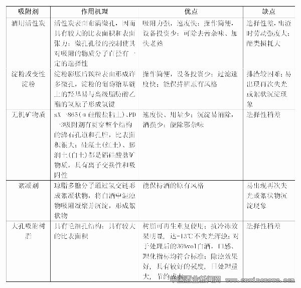 另外,降度用水的硬度對低度白酒渾濁也會產(chǎn)生很大的影響,生產(chǎn)時一定要使用硬度小于100mg/L,Ca、Mg含量低的加漿用水。做好了以上兩點(diǎn),剩下的就要從過濾工藝的設(shè)計上去除渾濁的因素。主要的處理方法比較見表1。