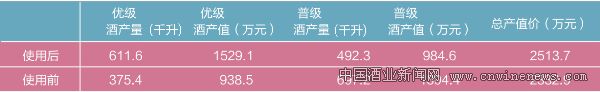表4 優質酒與普級酒的經濟效益對比