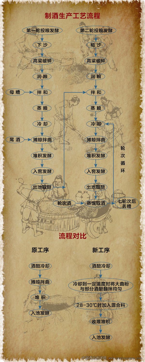 如何做到細膩體凈,酒度高而不沖,醬香突出,醇厚豐滿是首要因素,貯存老熟是輔助手段。各項理化感官指標是通過生產過程控制實現的,生產工藝為生產過程控制的綱領性指導文件。