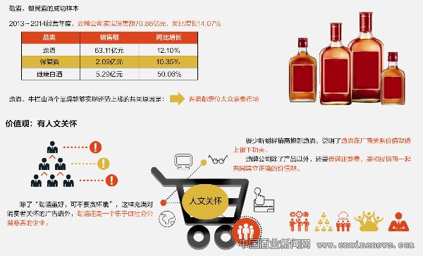有券商研究員表示,以勁酒、牛欄山為代表的定位于大眾消費的酒水,不依賴于公務消費,這讓其市場比較健康。同處10元~20元價位區(qū)間,“中國勁酒”125毫升規(guī)格在2011年的時候,年銷量便已高達5.5億瓶,牛欄山陳釀綠瓶牛二2013年銷售達2.4億瓶,更誘發(fā)了各酒企對大眾市場空間的向往。