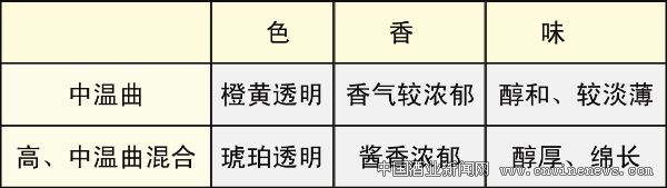 綜上所述,可以看出采用高、中溫曲混合發酵技術生產的黃酒在發酵過程中,既保持了中溫曲糖化力較高、發酵力持久的優勢,又融合了高溫曲產生醬香的優勢,從而使黃酒的品味從根本上得到了完整的改善,而使產品具備了入口飽滿、醬香濃郁、回味悠長的特點。
