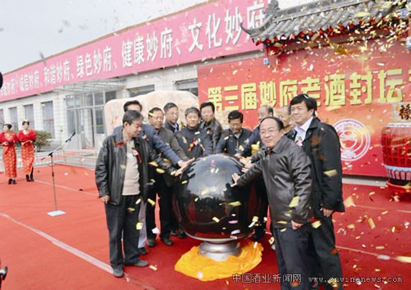 近日,第三屆妙府老酒封壇節開幕式在山東即墨妙府老酒有限公司舉行。國內釀酒專家代表及經銷商、消費者代表近500人,分別在盛有陳年老酒的酒壇上簽名,然后由廠家入庫封存。