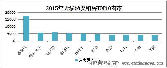 明細顯示,今年天貓文章來源中國酒業新聞網酒類銷售TOP 10商家分別是(按銷售額遞減):酒仙網官方旗艦店,騰易永立酒類專營店,也買酒官方旗艦店,購酒網官方旗艦店,莉得豐酒類專營店,醉夢酒類專營店,金沙酒類旗艦店,壹玖壹玖官方旗艦店,洋河官方旗艦店,澤雨食品專營店。