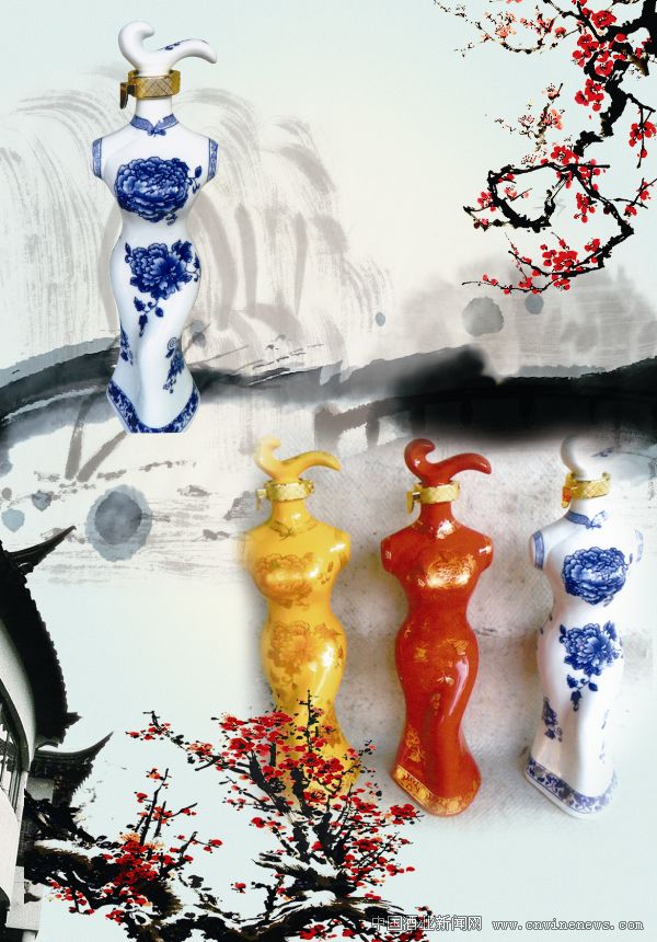 旗袍追隨時代,承載文明,以流動的旋律,美麗的畫意,濃郁的詩情,表現了中國女性的賢淑、典雅、溫柔、清麗的性情與氣質。而旗袍酒瓶的設計,是設計人員思想解放的結果,它繼承傳統,又不被傳統所束縛,把服飾文化、陶瓷文化與酒文化有機地結合起來,把生活和藝術連結起來,創作出獨具特色的旗袍酒瓶藝術品,把美的風韻灑向人間……