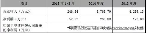 公開(kāi)轉(zhuǎn)讓說(shuō)明書(shū)顯示,博雅智能2013 年、2014 年、2015文章來(lái)源中國(guó)酒業(yè)新聞網(wǎng) 年1-3 月,經(jīng)審計(jì)的主營(yíng)業(yè)務(wù)收入分別為 4257.45 萬(wàn)元、3750.58 萬(wàn)元、246.54萬(wàn)元,占營(yíng)業(yè)收入比重分別為 99.96%、99.60%、100.00%。