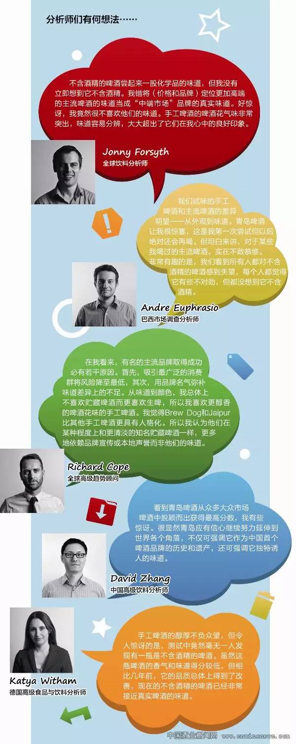 在該場小型味道盲測中,非酒精品牌的啤酒得分最低。測試參與者表示它沒有香氣,平淡無味,然而他們并不知道在測試中有這么一瓶不含酒精的啤酒。英敏特調查分析師Andre Euphrasio 說道:“非常有趣的是,我們看到所有人都對不含酒精的啤酒感到失望,每個人都知道它有些不對勁,但都沒想到它不含酒精。”