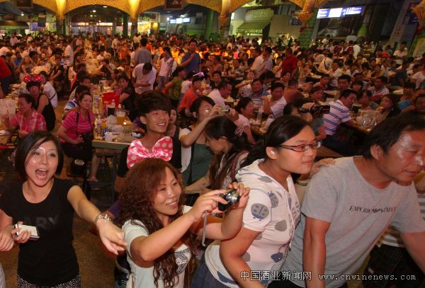 據(jù)統(tǒng)計(jì),今年啤酒節(jié)開節(jié)至今,近300萬(wàn)游客豪飲啤酒600余萬(wàn)噸,而青島獨(dú)占半壁江山。每天,下班時(shí)間一到,青啤宮內(nèi)觥籌交錯(cuò),歌舞不斷,十分熱鬧。不同膚色不是問(wèn)題,語(yǔ)言不通也不要緊,只要手擎大杯青啤,那就是四海兄弟。