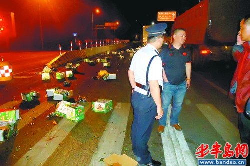 “當時幸虧馬路上沒有行人,否則被砸傷后果不堪設想。”民警告訴記者,事后他們詢問司機了解到,事發時準備將啤酒從青島市區運往位于城陽區夏莊街道的一處倉庫,共損失了100多箱上千瓶啤酒。