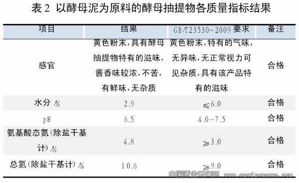 以啤酒酵母泥為原料經過清洗脫苦,加入復合酶制劑酶解反應,再經離心分離,濃縮噴霧后得到酵母抽提物粉狀產品。樣品的感官、水分、pH值 、總氮等各項指標均符合GB/T23530-2009 《酵母抽提物》中的要求。