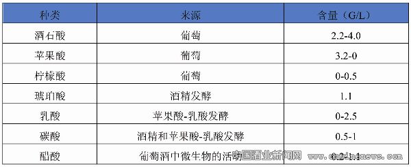 葡萄酒中酸的含量及來源
