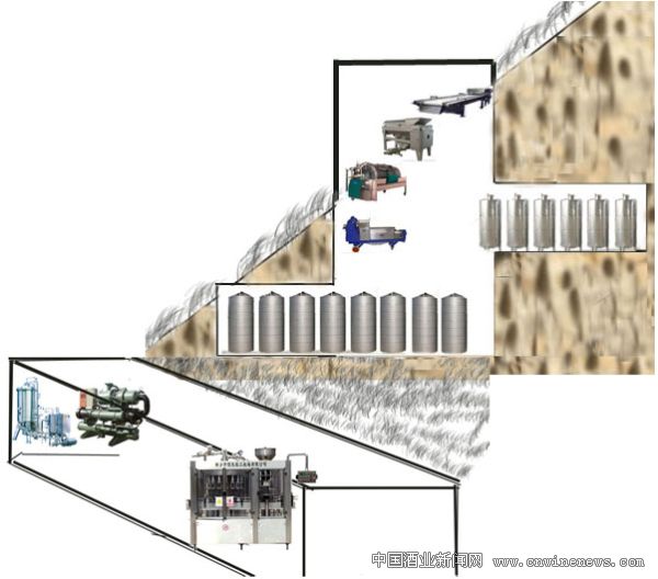 山地葡萄酒莊的設計充分利用山地地形地勢和高處葡萄的勢能,不使用或減少果漿泵和酒泵的使用,設計科學合理、操作方便,車間各操作單元應該銜接流暢而且距離最短。再通過先進釀造技術,獲得質量高而有特色的葡萄酒。