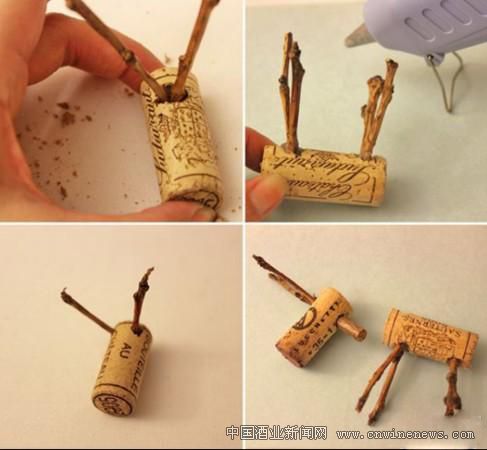 接下來,我們用大頭釘串上一個紅色的小絨球按進橡木塞,這樣,小鹿就有一個可愛的鼻子了。最后,用彩色細鐵絲把小領導圈文章來源中國酒業新聞網在小鹿的脖子上,大功告成了!