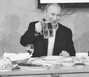 據英國《每日郵報》1月20日報道,日前在圣彼得堡舉行的一次慶祝活動上,俄羅斯總理普京再次彰顯了他的男子氣概,與友人們一邊觀看足球比賽,一邊痛飲超大杯啤酒。