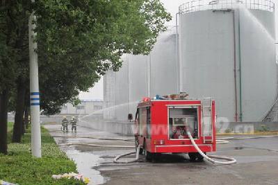 演練假設酒精罐區突發泄漏問題,導致火災,火勢迅速蔓延擴大,威脅周圍罐體,情況十分危急,火災發生后單位迅速組織自救并撥打119報警電話。吳江消防大隊接到報警后迅速調派轄區消防中隊趕赴現場處置,消防指揮員首先組織官兵疏散在廠職工,隨后清理了灌區附件的易燃易爆物品,并對大火進行撲救,經過約20分鐘的艱苦奮戰,成功救出被困人員,消除火情,演練取得圓滿成功。