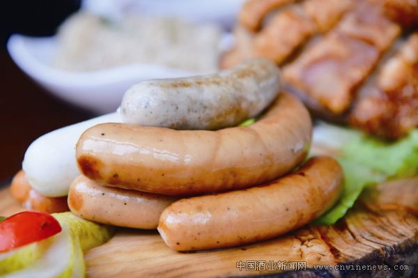 經典的肉腸拼盤是豬肉芝士腸、香蒜豬肉腸、煙熏豬肉腸、辛香雞肉腸、紐倫堡布腸和慕尼黑白腸等七款口味的組合,有脆有彈有粉有糯,是各種口感和滋味的復合聚成,這里的香腸都是原料進口自德國在餐廳制作而成。還有黃金無骨脆排,是奧地利的做法,以面包糠裹后炸到金黃香脆,薄薄的排肉鮮香,配上杏子和蔓越莓醬很甜美。這樣一個超級大肉拼盤,能叫眾食肉獸速速投降。