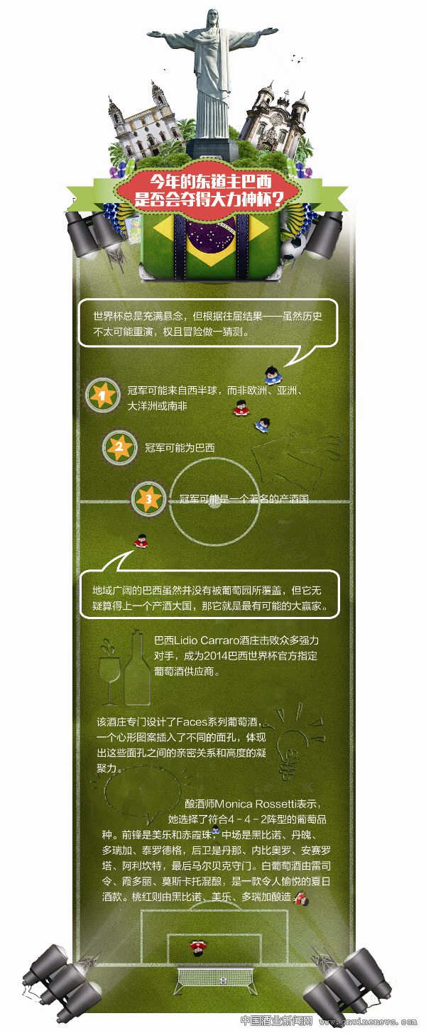今年的東道主巴西是否會(huì)奪得大力神杯?讓我們一起走進(jìn)巴西,品嘗這個(gè)國(guó)家的葡萄酒之后再做定論吧。