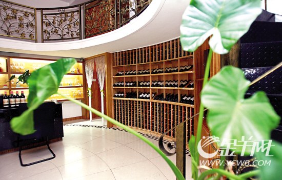 這也是我個人最喜歡和欣賞的一個地方,低調而奢華的寶藍色沙發與酒紅色窗飾配合得天衣無縫,一套音質奇佳的音響設備點明了這房間的主題。葡萄酒配音樂,你玩過沒有?在這里,你可以聽著《梁祝》或者《春江花月夜》或者歌劇品著不同的酒,當然主要是來自舊世界產區法國波爾多右岸的酒,主人自己就非常喜愛和欣賞波爾多右岸的葡萄酒,認為其柔美芬芳易被中國的消費者所接受。像一款霹靂山莊園的