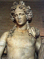狄俄尼索斯(Dionysus)與羅馬人信奉的巴克斯(Bacchus)是同一位神祇,他是古代希臘色雷斯人信奉的葡萄酒之神,他不僅握有葡萄酒醉人的力量,還以布施歡樂與慈愛在當(dāng)時成為極有感召力的神,他推動了古代社會的文明并確立了法則,維護(hù)著世界的和平。此外,他還護(hù)佑著希臘的農(nóng)業(yè)與戲劇文化。在奧林匹亞圣山的傳說中他是宙斯與賽墨勒之子,又有說是宙斯與普賽芬妮。古希臘人對酒神的祭祀是秘密宗教儀式之一,類似對于德米特爾與普賽芬妮的艾琉西斯秘密儀式。在色雷斯人的儀式中,他身著狐貍皮,據(jù)說是象征新生。而專屬酒神的Dionysus狂歡儀式是最秘密的宗教儀式。