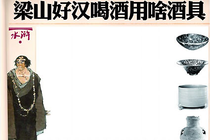 了解《水滸傳》的讀者都知道,梁山好漢離不開酒。武松一口氣喝了十八碗,接著耍起醉拳打死老虎一只 ;林教頭風雪山神廟、宋江潯陽樓題反詩,還有魯智深 、李逵等人,也都在酒店里完成了人生的重大抉擇。所以酒貫穿了水滸故事的始終。喝酒就要有酒具,你知道好漢們喝酒用的酒具都有啥說道嗎?