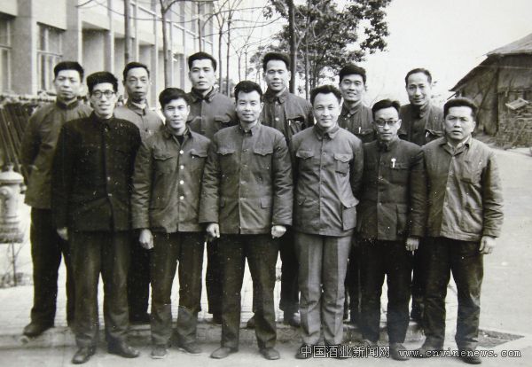 1978年在長沙召開的全國釀酒會議上,參會校友合影留念。前排左1汾酒廠萬良適;左2茅臺酒廠聶鏡明;左3洋河酒廠的梁邦昌;左5內蒙輕工廳范仲仁。后排右1本文作者;右2貴州輕工廳范德泉;右3白沙液酒廠肖德潤。