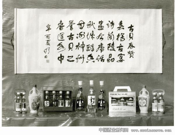 接著舒同詢(xún)問(wèn)武城酒廠的情況,張子文拿出新生產(chǎn)的五糧濃香型“古貝春”請(qǐng)舒同品嘗,打開(kāi)瓶蓋,香溢滿(mǎn)室,舒老高興地說(shuō):“你們很能干。前幾天我到燕京飯店宴請(qǐng)客人,喝的‘武城特曲’,那個(gè)酒就挺不錯(cuò)的。過(guò)去我在山東工作,好白酒光知道有蘭陵和景芝,現(xiàn)在看來(lái)你們也做得很不錯(cuò)了。”張子文借機(jī)說(shuō)出了求字之意,舒同爽快地走到書(shū)案上鋪氈潤(rùn)筆,“古貝春”三字很快書(shū)就。