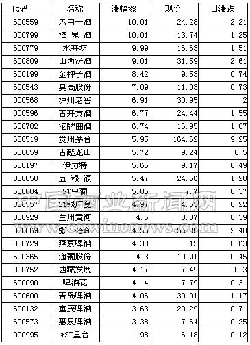 釀酒食品板塊已超越醫藥板塊占據板塊漲幅第一,漲幅高達6%以上,該板塊中已有老白干、酒鬼酒、水井坊等3家個股漲停,金種子酒也逼近漲停,該股中期凈利潤是08年全年的1.2倍。