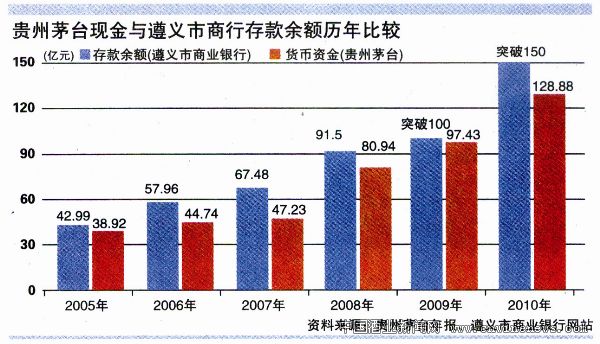 一家外資銀行的首席財務官分析稱,企業一般不會選擇太多家銀行開設資金賬戶,至多會選擇2家—3家銀行進行存款業務。該人士認為,從遵義市商行近些年來迅猛的發展速度,以及貴州茅臺與其千絲萬縷的聯系來看,貴州茅臺很可能就是遵義市商行的單一最大存款客戶。