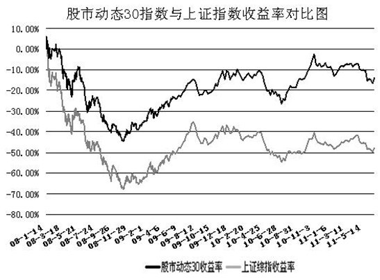 股市動態30指數自2008年1月1日設立以來,下跌13.95%,同期上證指數下跌47.81%。本周股市動態30指數跑輸大盤、股票組合跑贏大盤。