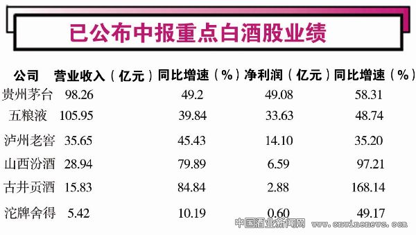 從中報營收和凈利排增長情況來看,高端白酒依然是白酒企業利潤的最大來源。