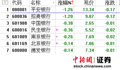 銀行板塊中,僅興業銀行一家收漲,其余建設銀行、工商銀行、農業銀行、交通銀行等8只收盤持平,而中國銀行、平安銀行、招商銀行、浦發銀行等收跌,平安銀行大跌1.26%居首,招商銀行跌1.2%,兩者大跌拖累了整個板塊表現。