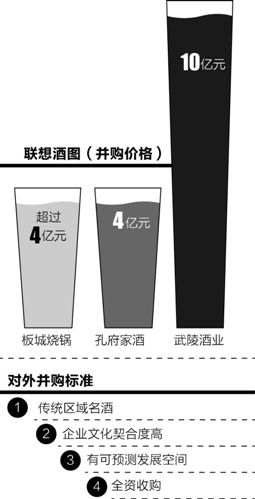 湖南武陵酒業(yè)是聯(lián)想控股進(jìn)入白酒行業(yè)并購(gòu)的第一家品牌,2011年6月,聯(lián)想控股出資1.3億元從瀘州老窖(38.50,1.00,2.67%)手中收購(gòu)湖南武陵酒公司39%股權(quán),今年4月,再次以1.65億元從瀘州老窖處獲得32.9%武陵酒,截至目前,已經(jīng)完成全資收購(gòu),總投資超過(guò)4億元。