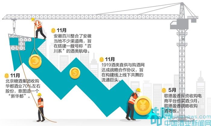 同樣依靠并購而迅速走強的還有電商巨頭1919。2015年“雙11”期間,1919酒類直供與購酒網達成戰略合并意向,雙方將在供應鏈、數據應用、物流配送、信息服務等方面進行全面深入的戰略合作,意圖組建起酒類流通領域的超級企業,成就該領域的實力最強。