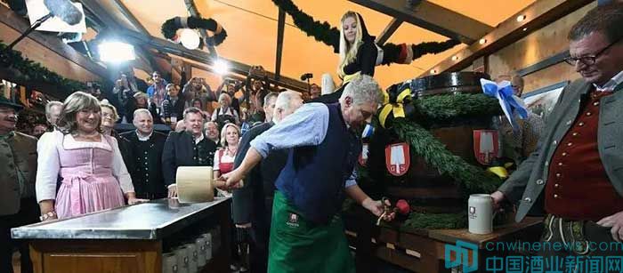 根據啤酒節傳統,正午12時,慕尼黑市長Dieter Reiter開啟了第一桶啤酒的瓶塞,并將第一杯酒送給巴伐利亞州長Horst Seehofer,宣布本次慕尼黑啤酒節正式開幕。盡管開幕式當天天氣不佳,但前來觀展的游客仍絡繹不絕。
